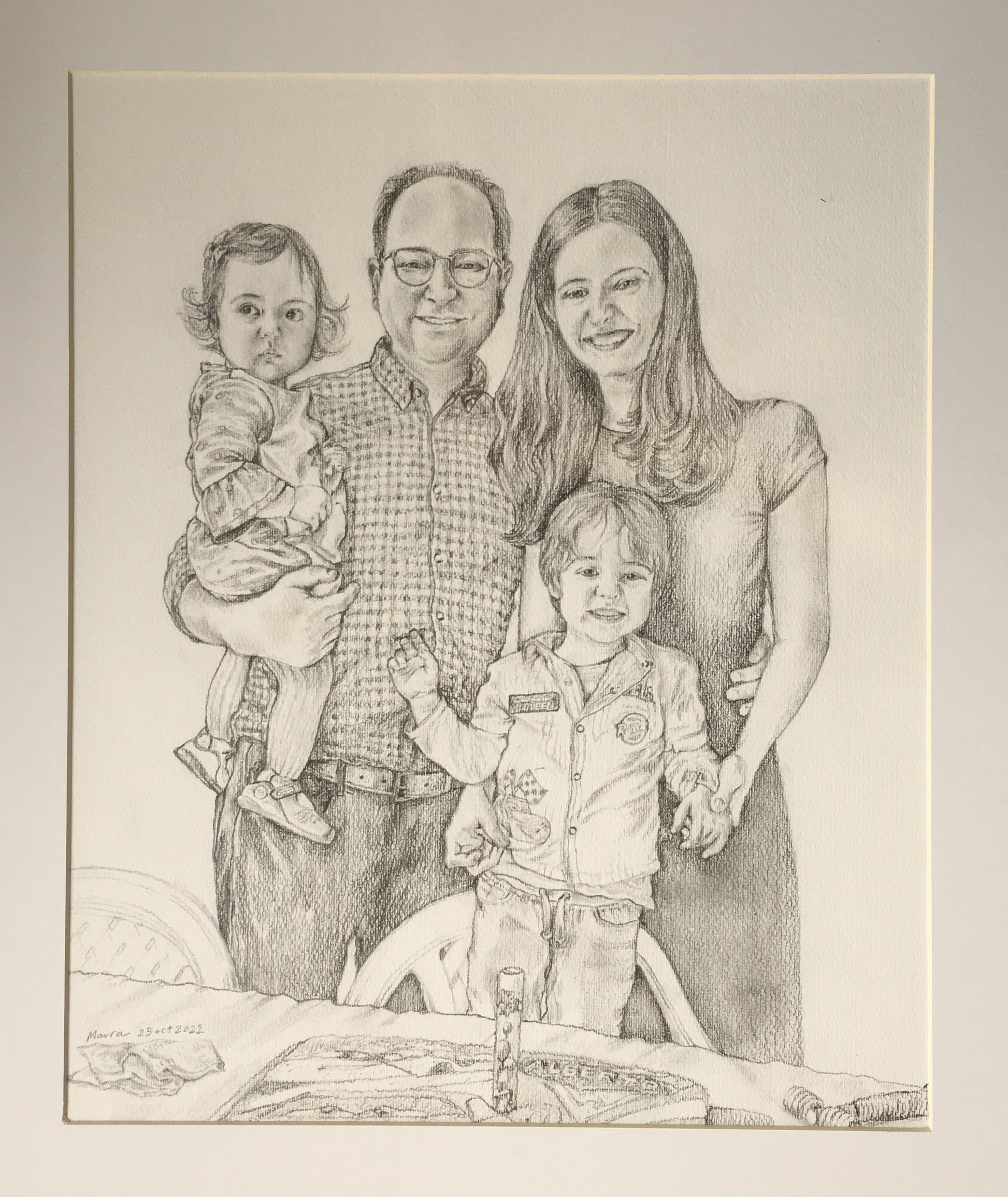 3. If you chose the bank transfer payment option, please attach your proof of payment along with high-quality photographs to the email: comisiones@mauramorfindelaparra.com. Include photos of all people and/or pets that will appear in the drawing, and specify if you would like a frame (the cost of the frame is additional). If you would like a frame other than the one offered in the framing option here, this is possible for an additional fee.