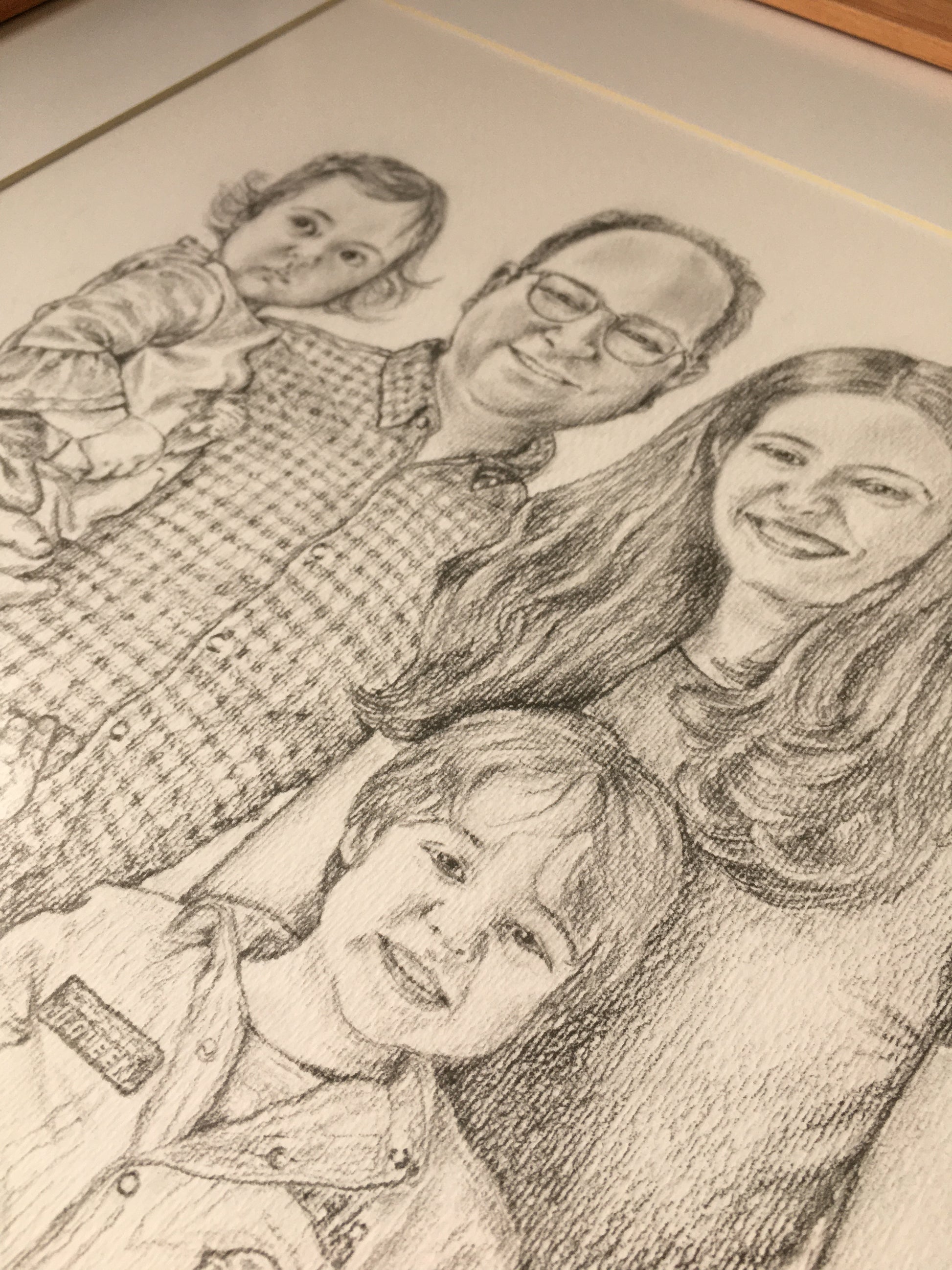 Unique portraits hand-drawn in pencil and charcoal on paper.